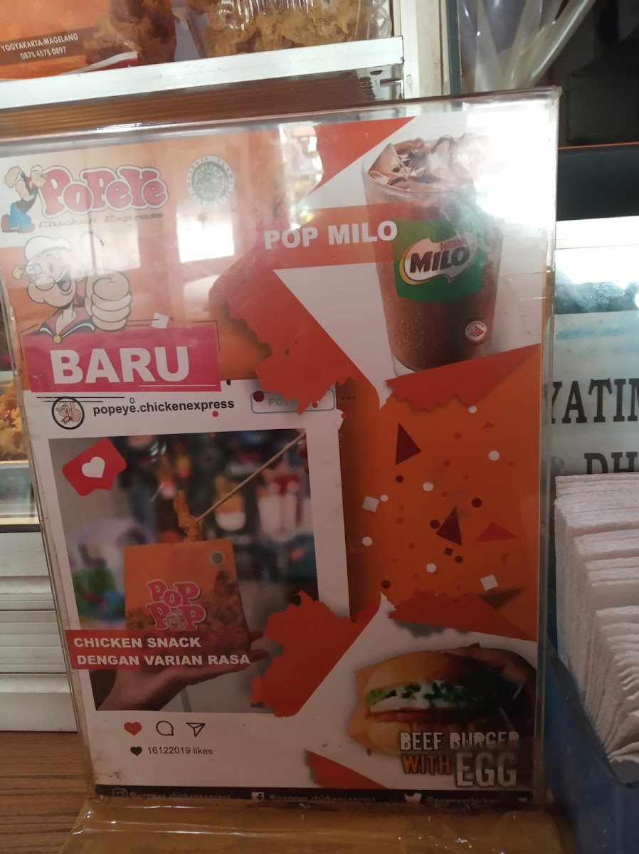 The menu at Popeneeye Chicken Express Gatsu on Jl. Jend. Gatot Soebroto, Magelang, reflects a clear focus on simple, well-executed fried chicken offerings that prioritize taste and value. The standout item, Double Dada Ayam, is especially appealing for diners who prefer a meatier, more satisfying portion, delivering a generous serving that highlights the restaurant’s crispy coating and juicy texture. Ayam Goreng represents the core of the menu, offering a classic fried chicken experience that feels familiar yet consistently reliable, making it an easy choice for both first-time visitors and regular customers. For those who enjoy bold flavors and crunchy textures, Kulit Goreng adds variety to the menu with its savory, crispy bite, working well as either a snack or a complement to the main chicken dishes. Overall, the menu feels focused rather than overwhelming, with each item serving a clear purpose and reinforcing the restaurant’s identity as a fast, flavorful fried chicken spot. The limited but well-chosen selection allows the kitchen to maintain consistency, while the highlighted dishes showcase different cuts and textures that cater to varied preferences, making the menu cohesive and satisfying from a reviewer’s perspective.